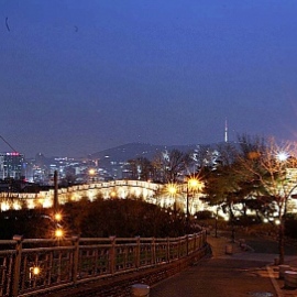 개성시는 개성겅곽 남쪽 대문에서 북쪽대문 북개성공원 구간 1000미터에 야간 조명기구 300개를 설치,31일 부터 점들을 한다고 밝혔다. 사진은 신도시 개성시의 야간 조명 점등모습...